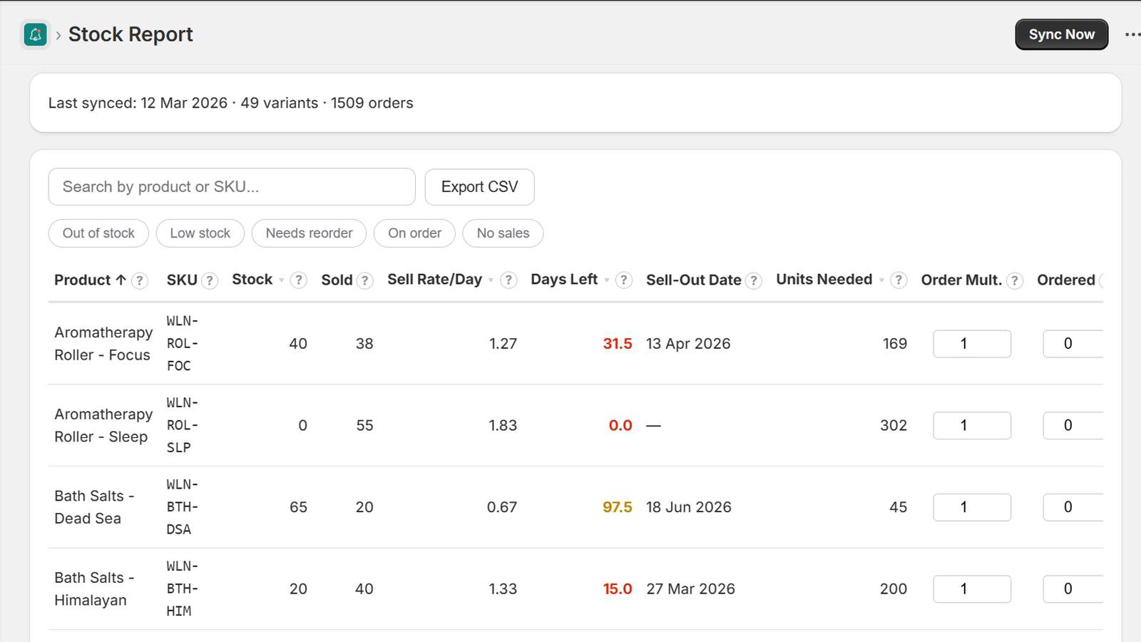 The Shopify inventory app that actually works. Tells you what's about to run out and when to reorder — nothing more.