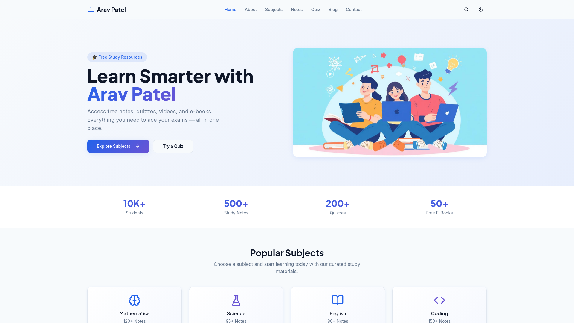 Access free study notes, interactive quizzes, video lessons, and downloadable e-books. Arav Patel helps school and college students ace their exams.