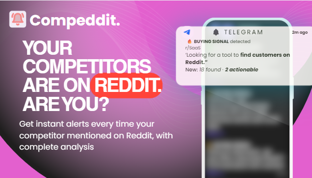 Monitor what your competitors are posting on Reddit. Track any subreddit or keyword and get instant alerts when rivals show up. Free to use.