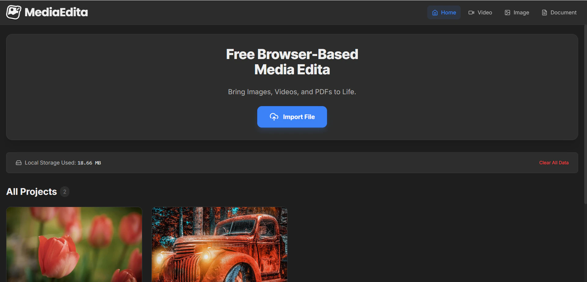 Founder of MediaEdita. It's a free browser-based editor for video, photo, and file work — and it runs fully offline, so nothing ever leaves your device. I built it because privacy-respecting tools shouldn't cost money or require an account. Still building and always shipping.
