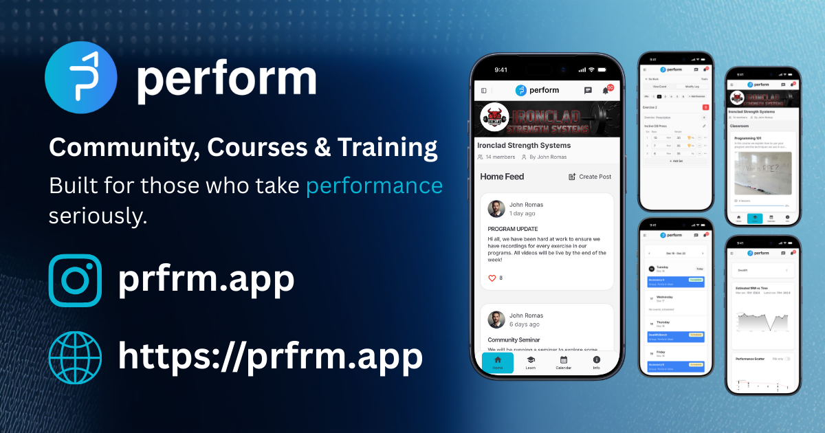 Perform is personal trainer software for coaches who run online coaching businesses and want to stop managing five different apps.Online personal trainers today rely on a patchwork of tools: one app for training programs, another for nutrition, a Facebook group or Skool for community, WhatsApp for check-ins, and email for everything that doesn't fit. Perform replaces this entire stack with a single, integrated coaching platform.Clients get a unified experience: a social community feed to stay connected with their coach and group, a calendar with their assigned workouts, smart workout logging with personal best tracking, a nutrition tracker with barcode scanning and meal planning, weekly check-in submission with progress photos, and Strava sync for cardio activities.Coaches get a complete business platform: training block planning and program assignment, nutrition programming with multiple approaches (IIFYM, meal plans, meal menus), check-in template creation, health metric tracking for all clients, course and education content delivery, real-time analytics and client oversight, and in-app messaging.Everything stays in one place. No more context switching. No more lost client data. No more paying for multiple subscriptions when one platform does it all.