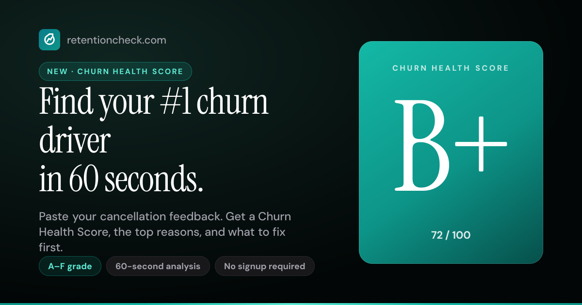 Paste cancellation feedback, get your Churn Health Grade in 60 seconds